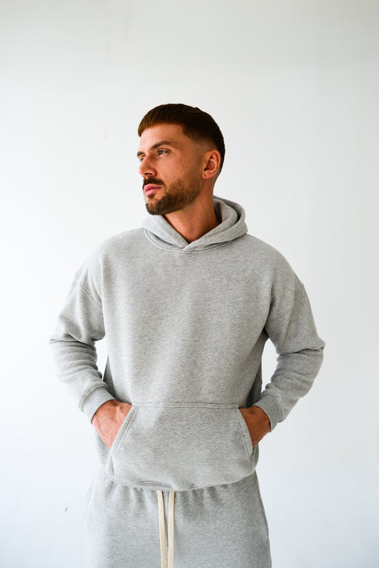 ESSENTIAL DOUBLE ZIP HOODIE - GREY